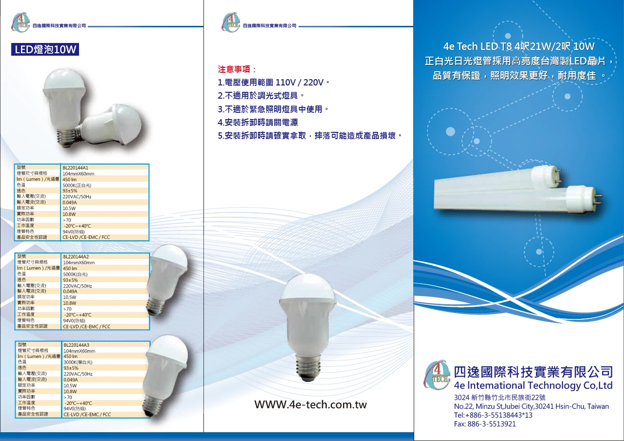 瀏覽次數:582by:四逸國際 提供優質LED燈專業製造商, 台灣指標綠色節能, 安全可靠 4e Tech LED T8 4呎21W/2呎 10W 正白光 日光燈管採用高亮度台灣製LED晶片,品質有保證,照明效果更好,耐用度佳 。 #照明#LED照明#燈泡製造#燈管製造#燈具製造#照明#照明節能#燈具